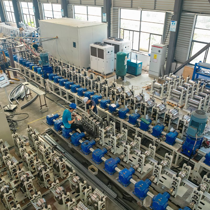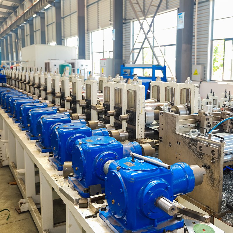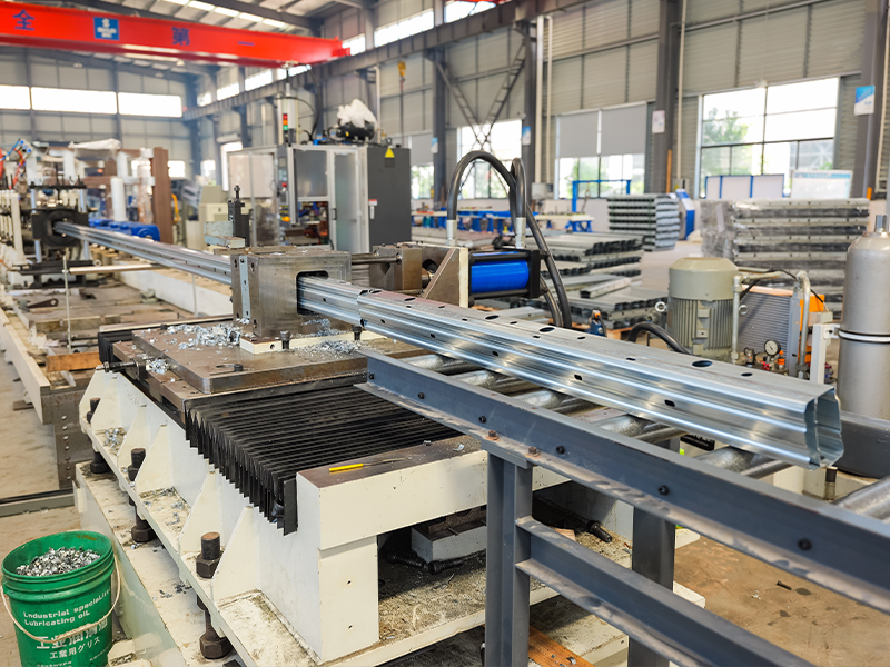 重心成型環(huán)節(jié)采用 50 道次漸進(jìn)式輥壓工藝,通過(guò)德國(guó) Copra 軟件優(yōu)化的輥輪曲線,使鋼材在冷彎過(guò)程中均勻變形。實(shí)時(shí)應(yīng)力監(jiān)測(cè)系統(tǒng)與伺服驅(qū)動(dòng)協(xié)同工作,將 B 字型截面尺寸公差控制在 ±0.3mm 內(nèi),直角部位圓弧過(guò)渡精細(xì),避免應(yīng)力集中現(xiàn)象。600 噸大型沖床搭配精密沖孔模具,實(shí)現(xiàn)防撞梁安裝孔位 ±0.1mm 的超高精度,省去二次加工工序。