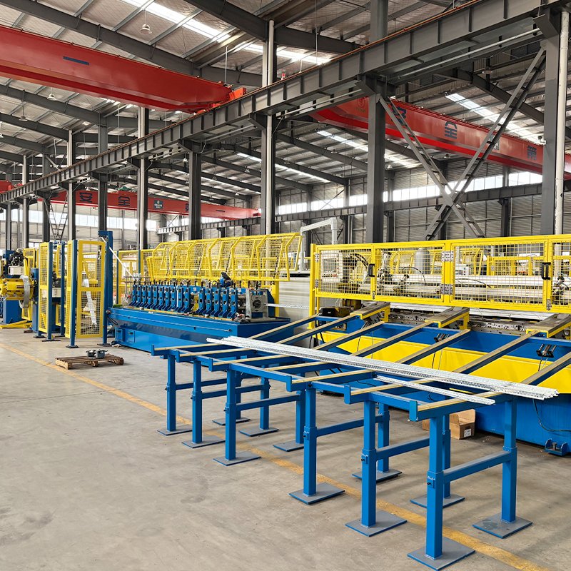 設(shè)備集成 “鋼帶開(kāi)卷 - 校平 - 冷彎成型 - 伺服切斷” 全流程自動(dòng)化功能,無(wú)需人工干預(yù),從原料到成品一氣呵成。無(wú)沖孔工況下產(chǎn)能達(dá) 120 米 / 分鐘,單日 8 小時(shí)比較高可產(chǎn) 8000 米龍骨,較傳統(tǒng)半自動(dòng)化設(shè)備效率提升 2 倍,大幅減少人工投入,降低生產(chǎn)成本。